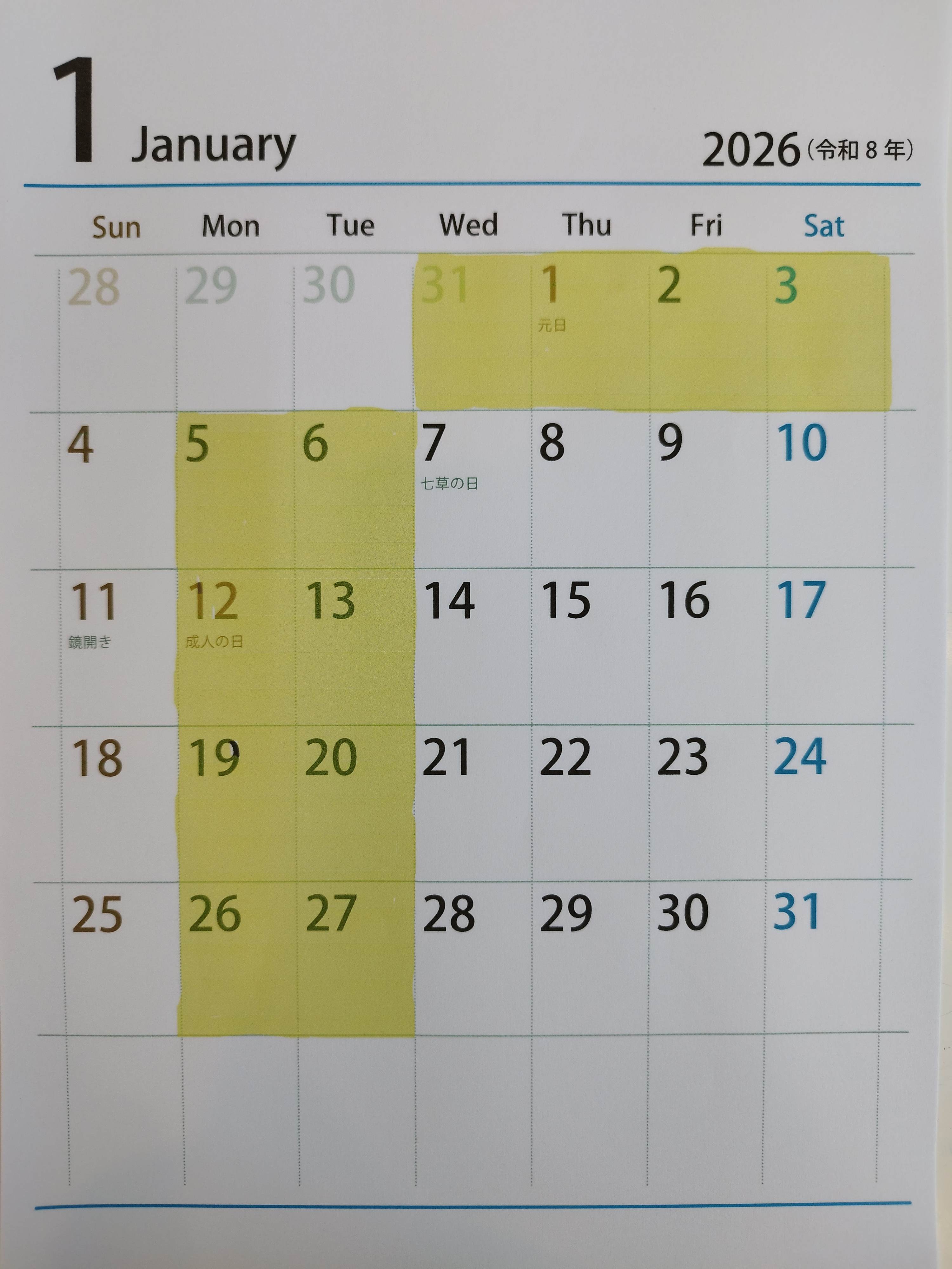 12月31日(水)から1月3日(土)まで正月休みとさせていただきます。